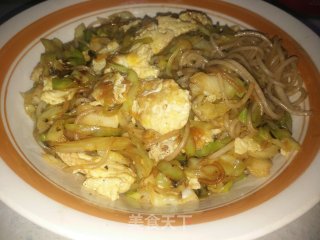 鸡蛋打入碗中搅散 ,包菜切丝,葱姜切末,水粉清洗干净。