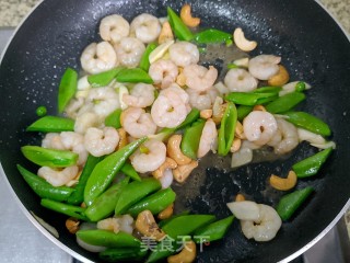 锅中加少量底油,烧热后下入甜豆煸炒。