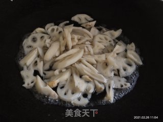 莲藕炒到微黄。