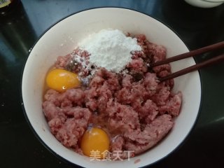 取一张馄饨皮包上肉馅,肉馅不要包太多了。