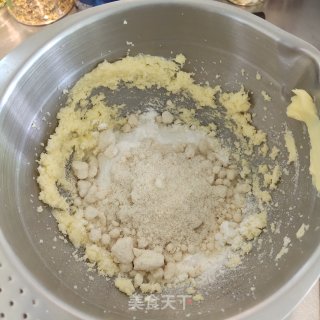黄油软化加入砂糖打发 拌入杏仁粉和低粉形成面团。