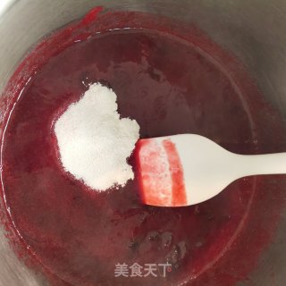 加入果胶和糖 并继续小火煮至沸腾厚离火 晾凉至室温。