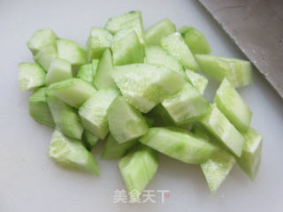 接着,将切好的黄瓜和洋葱放入大碗中。