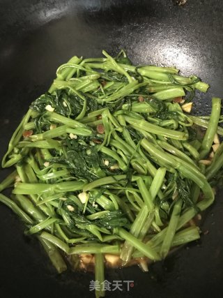 放入空心菜翻炒至断生。