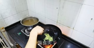 油热下入菜码炒香。