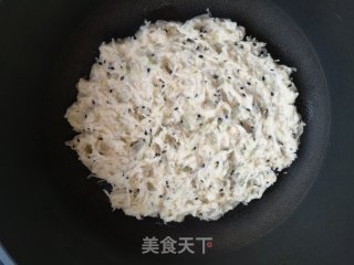 锅中加入食用油,将萝卜丝面糊加入锅中,摊平烙制。