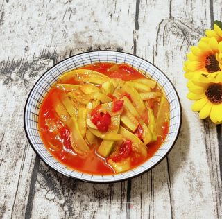地道家常菜,如果西红柿味不够浓郁,加入番茄沙司,味道鲜香,酸甜爽脆,开胃营养。