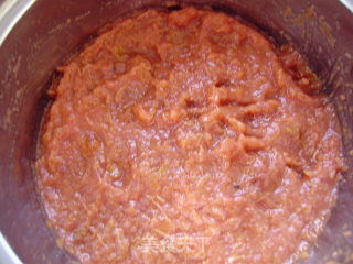 将冰糖全部溶化,并绞碎,成山楂酱待用。