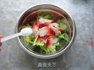 焯烫好的包菜放到冷水中浸泡一会儿捞出控水备用。