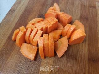 红萝卜洗净,削皮,切块,备用。