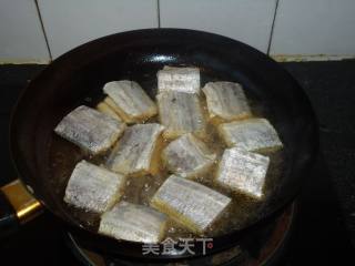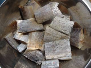 将带鱼剁成小段,撕去筋膜,冲洗干净,用料酒,盐,胡椒粉腌上半小时,葱姜蒜切好备用