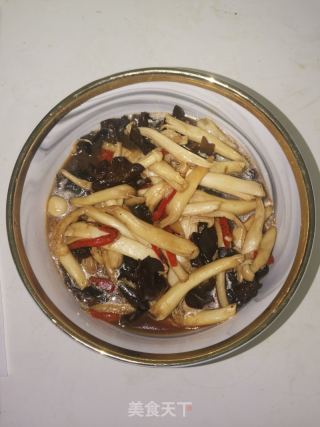 红椒洗净去蒂切丝,海鲜菇去除根部洗净,木耳泡发。