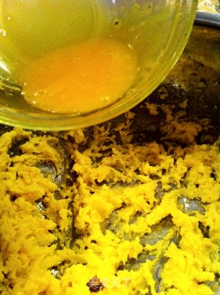 留少许蛋黄备用,将剩下的蛋黄分次加入黄油中,打发至蛋黄与黄油充分混合。