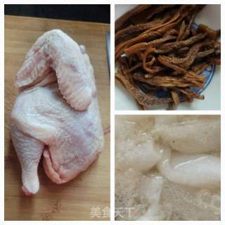 准备:老母鸡,鹿茸菇,竹荪(后两样食材提前泡发)。