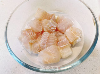 将巴沙鱼洗干净后,切块用厨房纸吸干多余的水份,装到碗里备用。