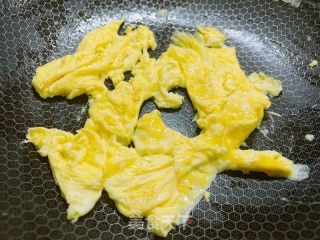 热锅凉油,油温三成左右,放入鸡蛋液,炒一下鸡蛋,不用炒太熟哦。