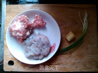开始包饺子了,虾仁没有拌在一起,直接将改刀好的虾仁放在馅里