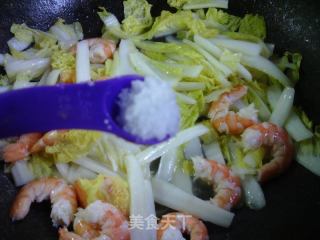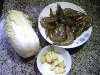 食材:娃娃菜、鲜虾(已去虾线清洗)、姜片。
