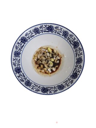碗中放入葱花,加入鸡精,盐,白胡椒粉,生抽,陈醋和芝麻香油。