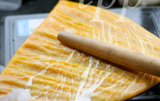 红薯去皮切小块,用塑料袋密封,入微波炉高火转4分钟,取出用檊面杖敲打成泥。