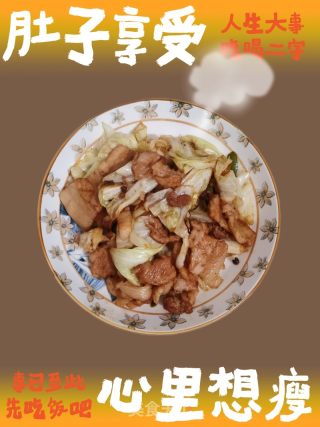 再加入菜叶,放入盐和陈醋炒软,最后放入五花肉片炒匀即可。