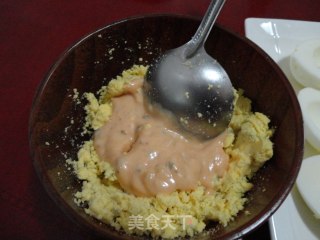 用裱花袋挤到蛋白里,加点西红柿,黑白芝麻那可