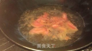 番茄一只去皮,切块,直接放入锅中(因我家成员体型问题,控制油摄入量,所以不放油),加少许水,开火住至番茄块稍变软
