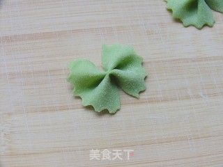 “ 春天来了,百花盛开,于是,小蜜蜂来了,蝴蝶也来了。 在这样一个季节里,给餐桌上来一点生动的美景吧!我们一起来做菠菜蝴蝶面。 前几天做过一次菠菜蝴蝶面,我家宝贝超爱吃,好奇地说:“蝴蝶飞进宝贝碗碗里了……”这一下,就吃了满满一碗。 外面有许多卖蝴蝶面的,可是总觉得不放心,自己做的健康又真材实料,而且最重要是能享受蝴蝶在自己手中翩翩飞出的喜悦,何乐而不为? 我用的是菠菜汁和的面,筒子们尽可以发挥自己的想象力,用紫甘兰、胡萝卜、南瓜等做出不同颜色的漂亮蝴蝶来,保管你家宝贝喜欢得不得了。 ”