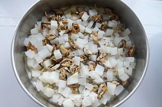 “ 淡菜的营养价值很高,并有一定的药用价值。淡菜蛋白质含量高达59%,其中含有8种人体必需的氨基酸,脂肪含量为7%,且大多是不饱和脂肪酸。另外,淡菜还含有丰富的钙、磷、铁、锌和维生素B、烟酸等。由于淡菜所含的营养成分很丰富,其营养价值高于一般的贝类和鱼、虾、肉等,对促进新陈代谢,保证大脑和身体活动的营养供给具有积极的作用,所以有人称淡菜为“海中鸡蛋”。 ”