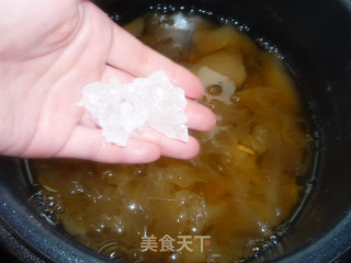 “ 冰糖有生津润肺、清热解毒、止咳化痰、利咽降浊之功效; 银耳性平味甘淡,不仅是润燥滋阴的要品,还是一种含膳食纤维的减肥食品; 梨味甘性寒,具有止咳化痰,清热降火,润肺去燥的功效。 ”