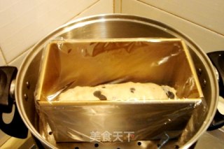 此时,加入黑提的面团儿已发酵至两倍大,把模具取出。