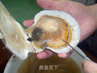 用小刀伸进去把扇贝撬开,留下有肉的半边,沿着壳壁用小刀把贝肉取下。