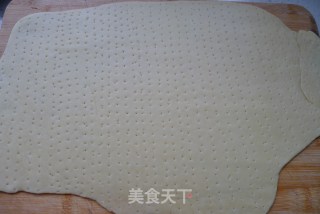 最后将其擀成2mm厚的薄片,用叉子在上面刺上均匀的小孔
