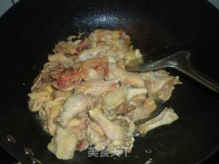 油锅烧热,将鸡块放进锅里煸炒
