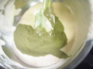 将抹茶蛋黄糊加入12中,稍稍拌一下。