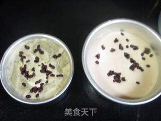取少量蛋黄糊到另一个碗中,筛入抹茶粉。