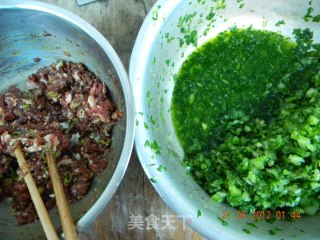 芹菜生的,不用水汆,剁完之后用盐揉一揉,出了很多水