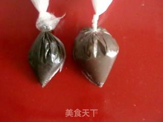 巧克力炼乳装入保鲜袋,黑芝麻粉加巧克力炼乳装入保鲜袋。