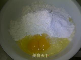 面粉加入两个鸡蛋、适量温水和面 要软一些 我和硬了 压不动 只好要老公帮忙