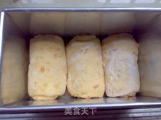 卷成圆筒状放入吐司模内盖上保鲜纸放放冰箱内发酵