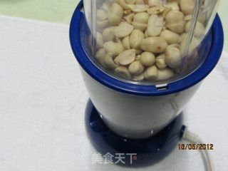 倒入打碎的冰糖和花生仁粉,加入纯牛奶和生抽适量