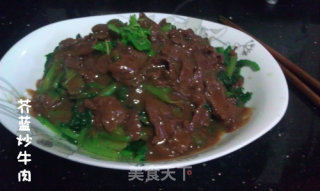 最后把炒好的牛肉倒在刚炒好的芥蓝菜上就完成了。