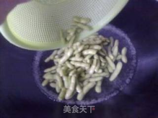 锅中放水煮沸,倒入毛豆焯一分钟。