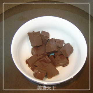 巧克力融化后,把液体倒入一个无水的平底盘里,放冰箱冷藏10分钟左右,直到成为固体。
