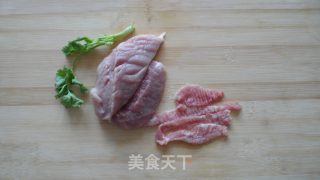瘦猪肉切成片,用刀背背成花状。
