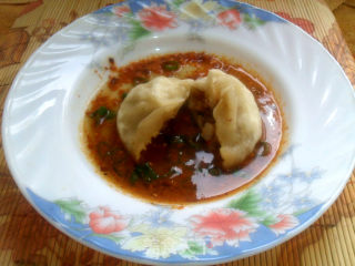 吃的时候配上辣椒酱,醋,香葱混合一块的蘸料吃,很开胃那。
