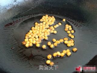 锅里加油烧5 成热加黄豆,翻炒,直到黄豆变成金黄色盛起