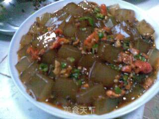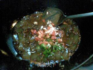 加盐,醋调味。放青红椒,蒜碎翻炒
