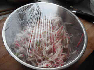 加入适量盐,和匀后,加盖,腌制至少一天。不要太淡,太淡萝卜容易酸。