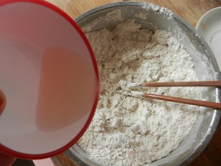 面粉中慢慢加入酵母水,边加水边用筷子搅拌成雪花状